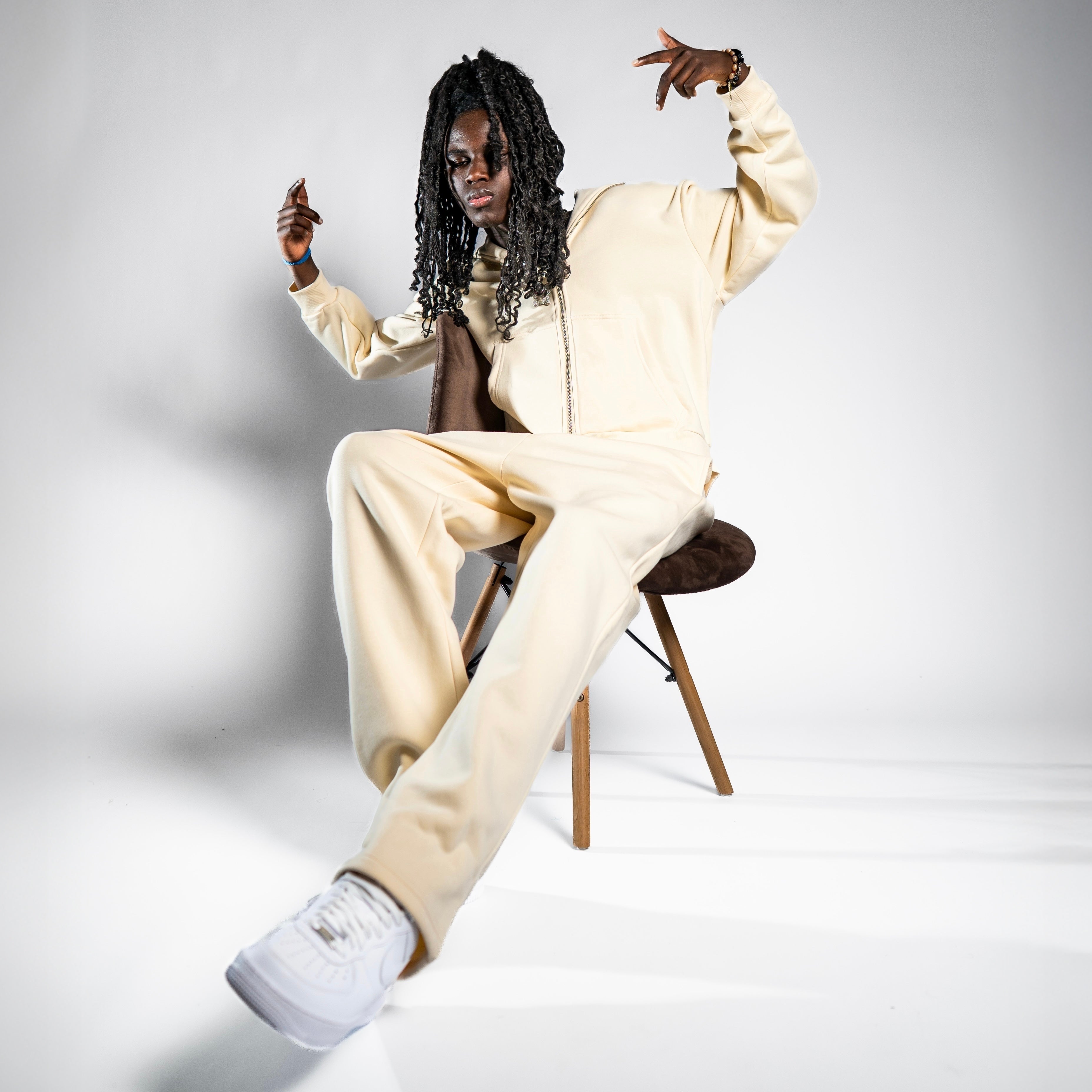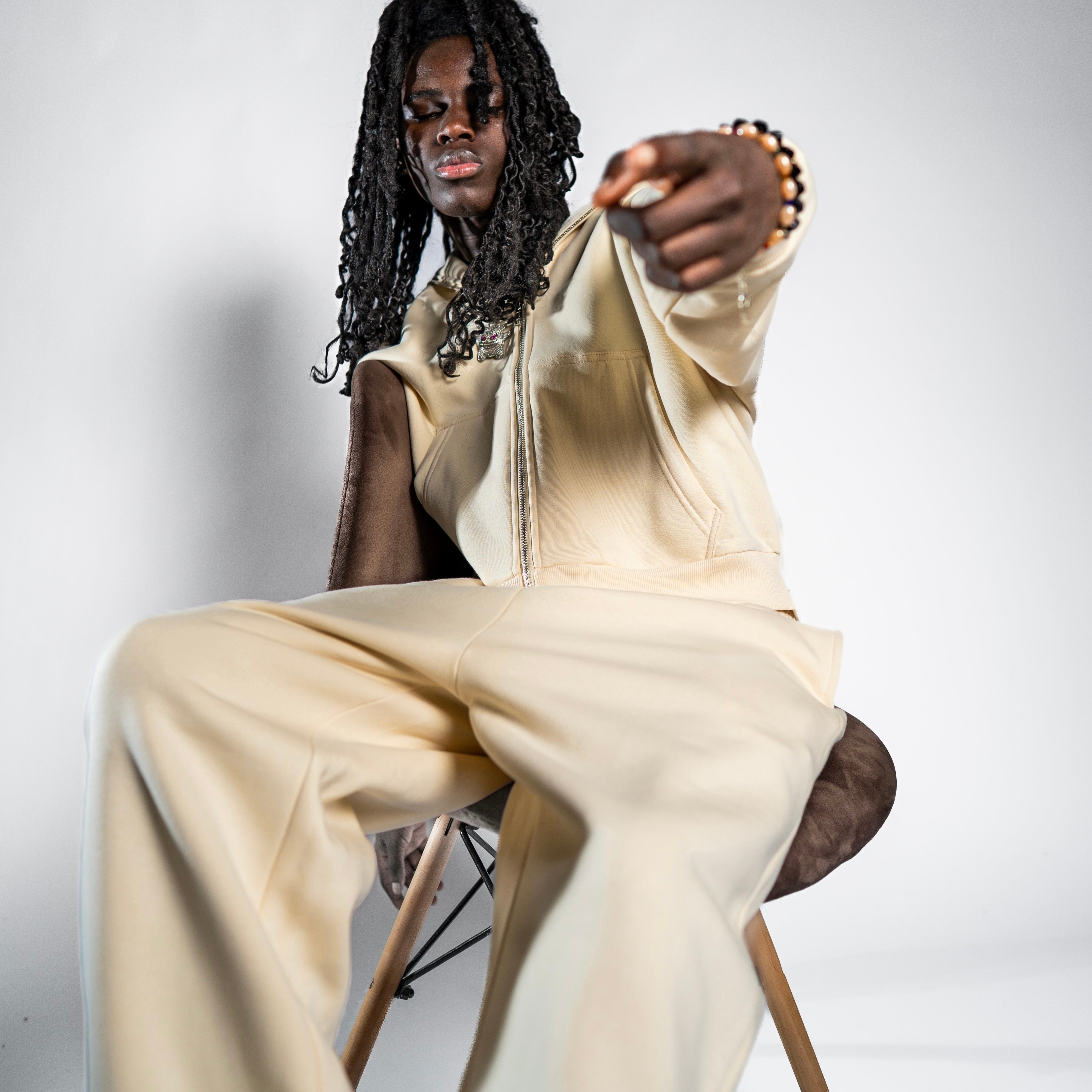 NO LOGO OPEN LEG JOGGER VANILLE